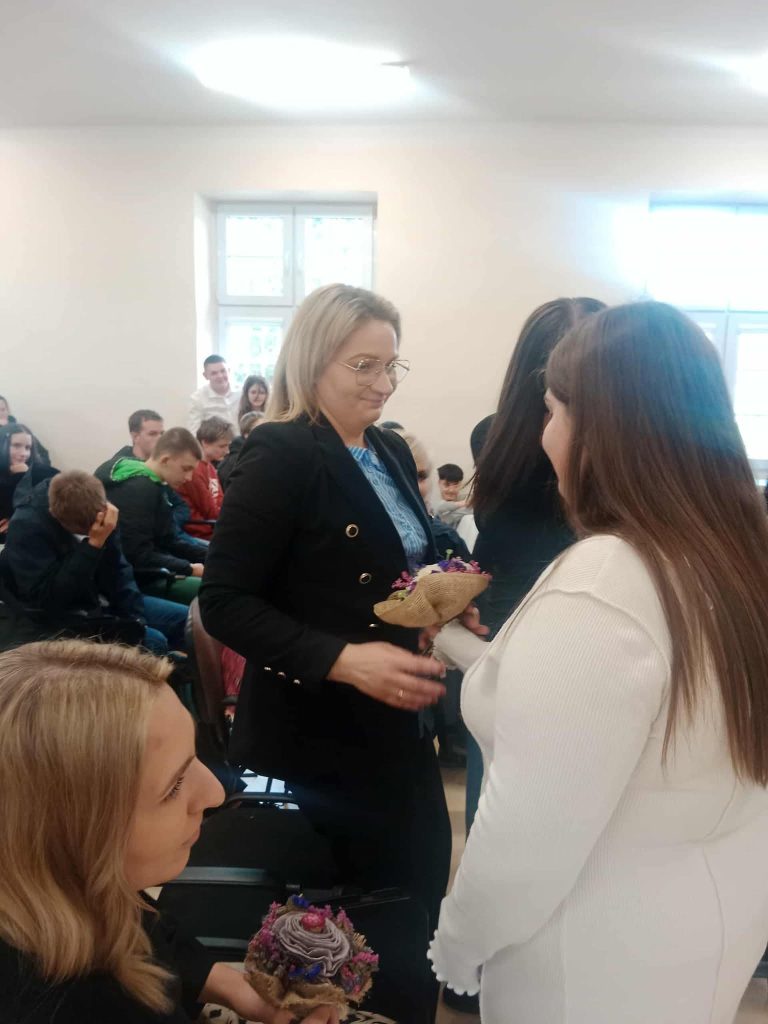 Uczniowie w serdecznym geście obdarowali nauczycieli, pedagogów oraz pracowników administracji i obsługi, pięknymi własnoręcznie wykonanymi, kompozycjami kwiatowymi ![]()